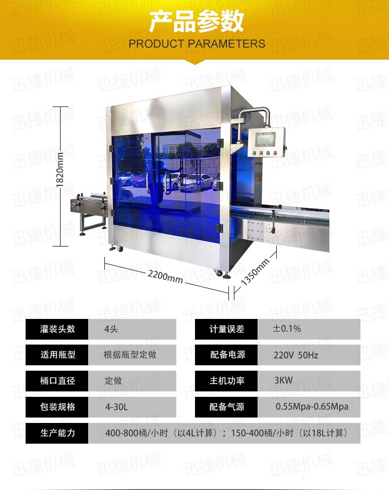 機油灌裝機適用于對4kg-25kg汽車用品類產(chǎn)品:潤滑油、防凍液、車用尿素等液體灌裝。自動完成計數(shù)進(jìn)瓶、計重量灌裝、輸送出瓶等一系列操作。