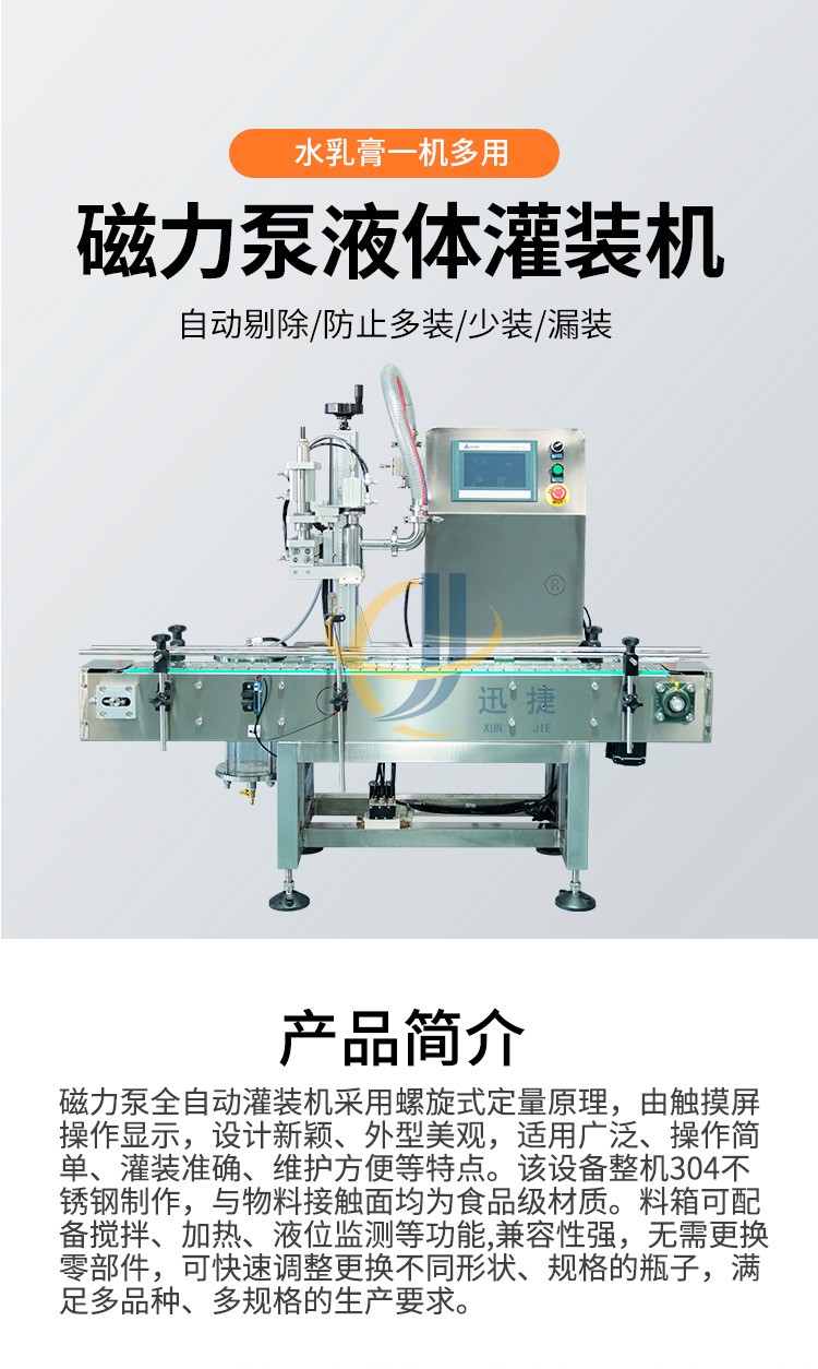 磁力泵全自動(dòng)灌裝機(jī)采用螺旋式定量原理,由觸摸屏操作顯示,設(shè)計(jì)新穎、外型美觀,適用廣泛、操作簡單、灌裝準(zhǔn)確、維護(hù)方便等特點(diǎn)。